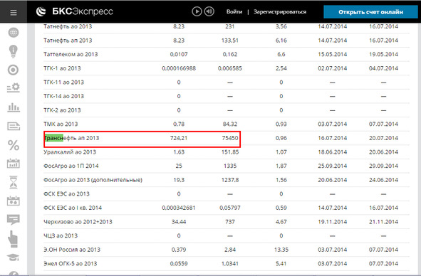 За 2013 год: 724,21 руб. на акцию.