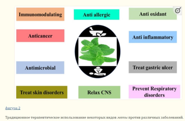 Растения Мяты содержат компоненты с цитотоксическими свойствами и могут быть использованы для разработки противораковых средств; например, M. longifolia, M. arvensis и M.. × piperita обладает цитотоксической активностью в отношении рака молочной железы у людей.