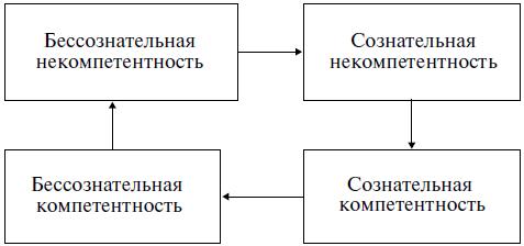 Например, до обучения вождению автомашины человек совершенно не представляет себе данный вид деятельности – он не только не знает, в чем именно состоит это умение и не задумывается об этом (сознательный компонент отсутствует). Это уровень бессознательной некомпетентности.