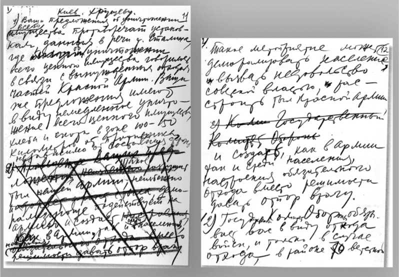 Черновик телеграммы И. В. Сталина к Н. С. Хрущёву