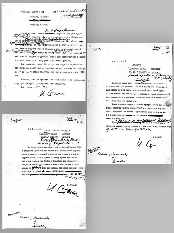 Тут же т. Сталин подписал постановление о награждении 4-х танковых заводов и 1000 чел[овек] работников танковой промышленности.