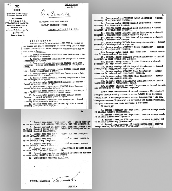 Широко известна опала маршала Жукова, сосланного Сталиным сначала в Одесский, а затем в Уральский военный округ. Менее известны «дела» других генералов. За настроениями генералов, особенно близких к Жукову, и за ним самим по указанию Сталина следили органы госбезопасности и регулярно его информировали. Так, 3 января 1947 года Абакумов направил вождю донесение следующего содержания.