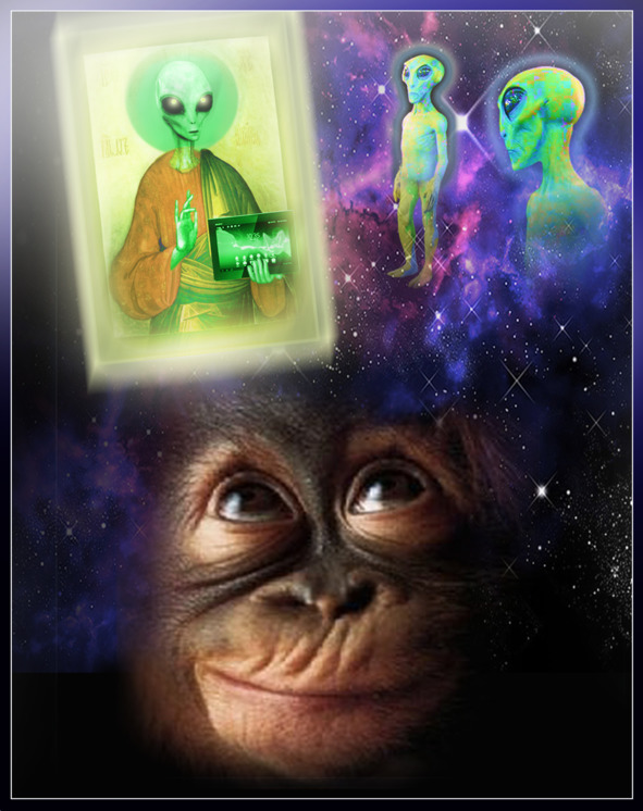 – Вы называете себя гордым именем – Человек… Но на самом деле, в реальной жизни и по вашим поступкам видно, что вы так и остались обезьянами, которых выделили мы, инопланетные пришельцы, из общей массы животного мира. И о каком божественном начале может идти речь…?
