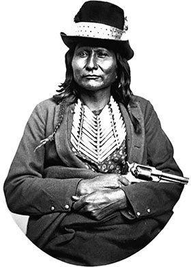 Колороу Colorow Юта (моаче). Родился ок. 1810 г. среди команчей. Отцом его был команч, а матерью, по некоторым сведениям, женщина из хикарийя-апачей. В детстве захвачен ютами и вырос в племени. В молодости прославился успешными набегами на индейских врагов, стал военным лидером. В 1849 г. встречался с Фримонтом во время известной экспедиции этого исследователя. В 1856 г. познакомился с индейским агентом Китом Карсоном. Если вождь ютов Оурэй старался во что бы то ни стало сохранять мирные отношения с белыми американцами, то у Колороу и его последователей наплыв переселенцев вызывал враждебность. Крупная община Колороу некоторое время жила в агентстве Денвер, а когда оно было закрыто, общину перевели к р. Уайт-Ривер. В 1878 г. индейским агентом там стал Натан Микер. Конфликт между вождем и агентом привел к тому, что Микер сместил Колороу с должности вождя, поставив на его место Сановика. Поведение агента в итоге вызвало возмущение обычно мирных ютов. Микер попросил помощи у армии, и посланный отряд угодил в устроенную Колороу засаду. 13 солдат и офицеров были убиты, 43 ранены, а агентство сожжено. Юты также убили Микера, его семью и еще 7 белых гражданских. Усмирить ютов был отправлен Рэналд Маккензи с кавалерией. Столкновения удалось избежать, Колороу с его людьми перевели в резервацию Уинта, шт. Юта. Община Колороу периодически продолжала охотиться за пределами резервации в Колорадо, а вождь даже некоторое время жил в колорадской резервации Южные Юты. Истерия среди белых поселенцев привела к «Войне Колороу 1887 г.», закончившейся единственной схваткой между индейцами и гражданскими. У сторон закончились боеприпасы и они разъехались: белые вернулись в городок Микер, шт. Колорадо, а Колороу с ютами в резервацию Уинта, шт. Юта. В результате схватки были убиты 3 белых и 7 ютов. Люди Колороу продолжали охотиться в Колорадо, где 11 декабря 1888 г. в лагере на р. Уайт вождь умер.