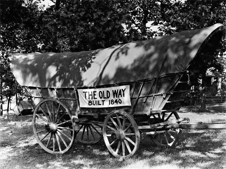Конестогский фургон Conestoga wagon Большой крытый фургон, удобный для дальних путешествий и потому пользовавшийся популярностью у переселенцев на Дальний Запад. Выпускался в Конестога-Вэлли, шт. Пенсильвания. В длину достигал 24 фута, в высоту 12, весил ок. 2 тонн. Передние колеса были меньше задних. Издали его силуэт напоминал судно, поэтому его называли «прерийной шхуной».