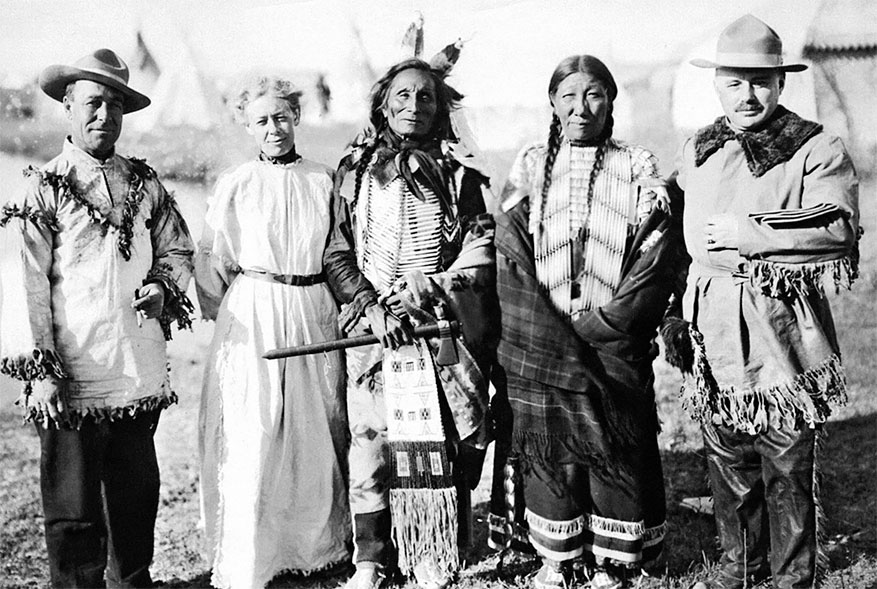 Короткий Бык с женой и тремя белыми американцами