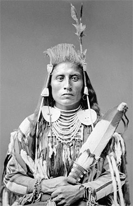 Магическая Ворона (Пилатчивакспаш) Medicine Crow (Peelatchiwaaxpaash) Кроу. Вождь общины Пнутых в Живот. Родился в 1848 г. в окрестностях р. Маслшелл. Более правильный перевод его имени – Священный Ворон. Его отцом был вождь Соединенные Вместе, а матерью – Один Теленок Бизона. В первый военный поход отправился в 15 лет. Приобрел известность храброго воина. К 1870 г. уже был признанным военным лидером и часто водил успешные набеги против врагов. На его счету угоны лошадей, «ку», захват оружия у врага в рукопашной схватке. Среди его близких друзей были такие известные кроу, как Много Подвигов, Колокольная Скала, Два Леггина, Красивый Орел, Два Живота и Старая Ворона. Любил подшучивать над друзьями, но юмор его не всегда находил среди них понимание. Много Подвигов вспоминал, как однажды зимой после боя с сиу отряд его соплеменников въехал в форт Пиз. Их лидер Магическая Ворона был плотно обернут в бизонью накидку и только немного высунул руку для приветствия. «Радостный Желтые Глаза (торговец Маккормак) схватил ее и начал трясти. Когда Магическая Ворона повернулся, чтобы пожать руку майору Пизу, я увидел, как Желтые Глаза отпрыгнул назад и выронил на тонкий снег некую вещь, которая при ударе звучала подобно камню… Замерзшая рука сиу! Магическая Ворона отрезал ее у убитого им вблизи Черных Холмов врага и вез в течение многих дней, чтобы подшутить над своим другом. Но его друг не смеялся». Считается, что Магическая Ворона не менее трех раз искал видения: его духами-покровителями стали орел и «огромный ястреб». Духи даровали ему защиту и способности предвидеть будущее. Он был шаманом, но никогда не занимался лечением больных и раненых. Несколько раз с племенной делегацией посещал Вашингтон. Умер в 1920 г.