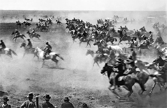 Оклахомская Земельная гонка Oklahoma Land Rush Распределение участков земли на пустующих и бывших индейских территориях, проводимое Земельной конторой США на основе Закона о гомстедах 1862 года. Из-за огромного наплыва желающих устраивался заезд по принципу «кто первым доберется до участка, тот и владелец». Земельные гонки в Оклахоме проводились 7 раз в период 1889–1895 гг. Первая гонка произошла 22 апреля 1889 г., в ней приняли участие 50 тыс. чел. Ее участники были прозваны «Восьмидесятидевятниками».