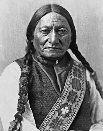 Сидящий Бык (Татанка Йотанка) Sitting Bull Сиу (оглала). Родился в 1841 г. в шт. Вайоминг вблизи р. Дир-Крик. Телеграфист Сухопутного пути Оскар Коллистер обучил его английскому языку, чтению и письму. В середине 1860-х гг. активно сражался в войне с американцами, принял участие в нападениях на Джулесбург (1865 г.) в Колорадо, станции Сухопутного пути, в битве с Феттерманом (1866 г.) в Вайоминге. После окончания войны присоединился к Красному Облаку и поселился в агентстве Красного Облака. В составе делегации 20 лидеров сиу в 1870 г. побывал в Вашингтоне. В 1875 г. снова посетил Вашингтон с Красным Облаком, где 7 июня получил в дар «винчестер» с памятной гравировкой. В 1876 г. вместе с группой сиу послан найти Бешеного Коня и уговорить его сдаться. 17 декабря их атаковали кроу. Сидящий Бык и 4 сиу были убиты.