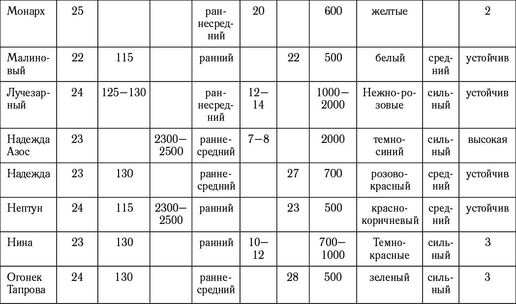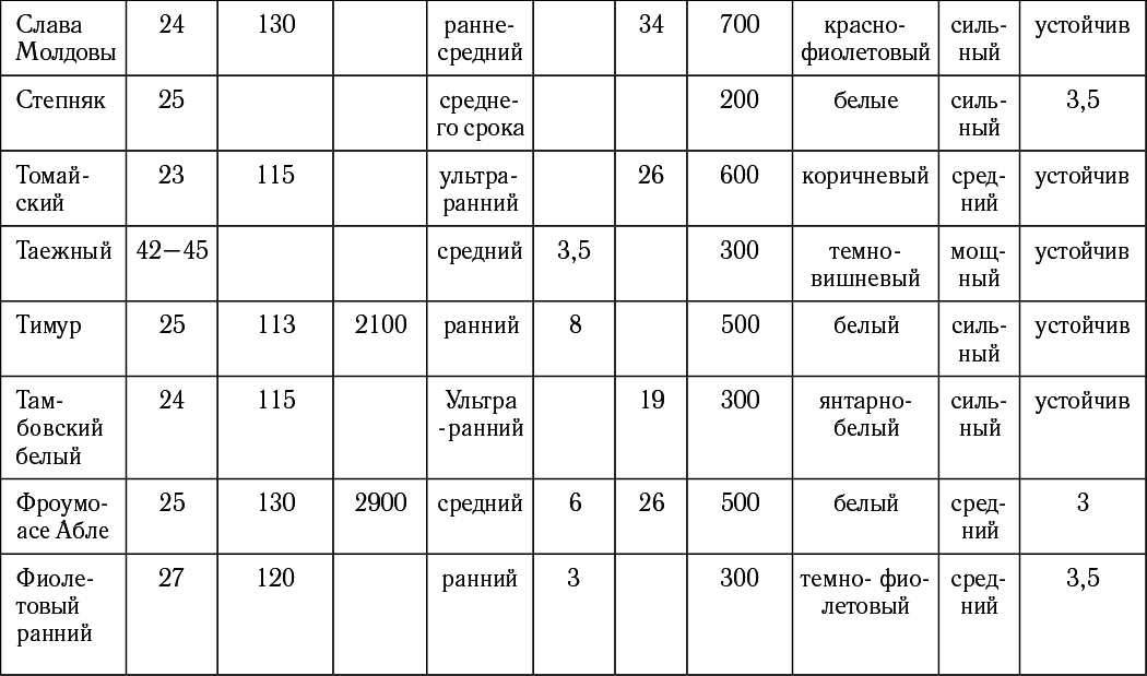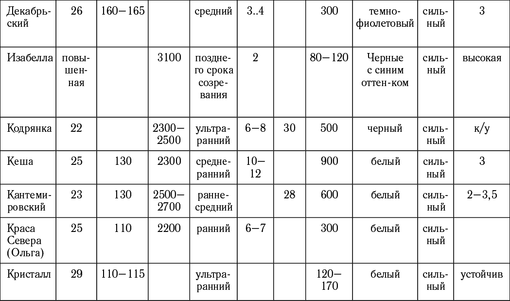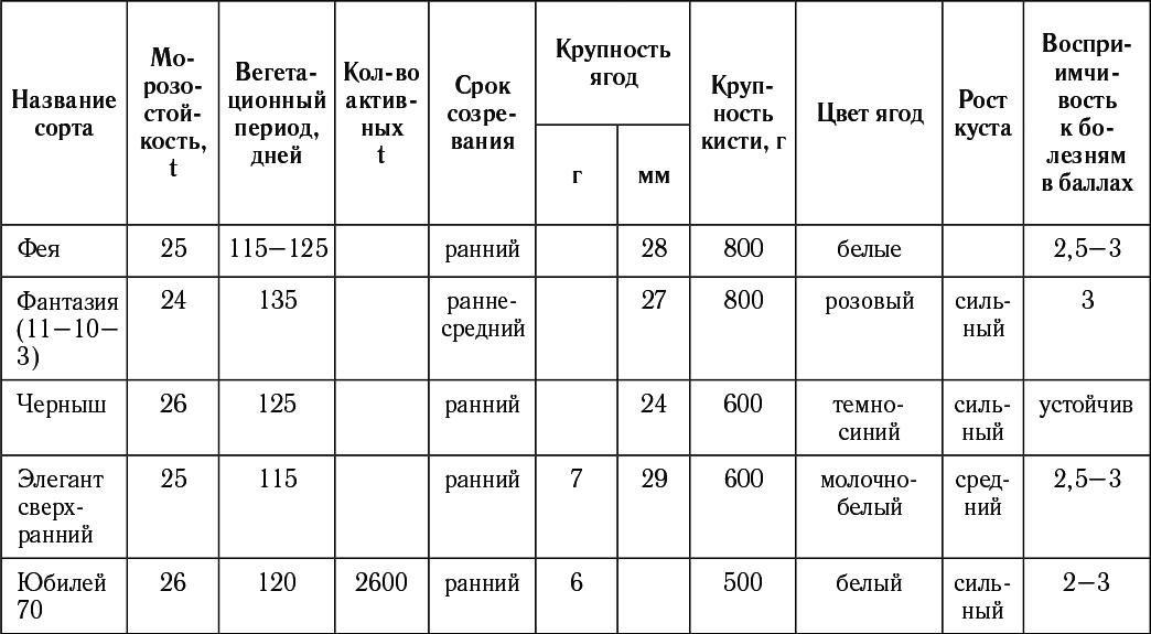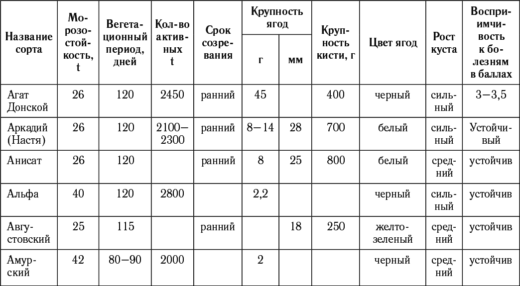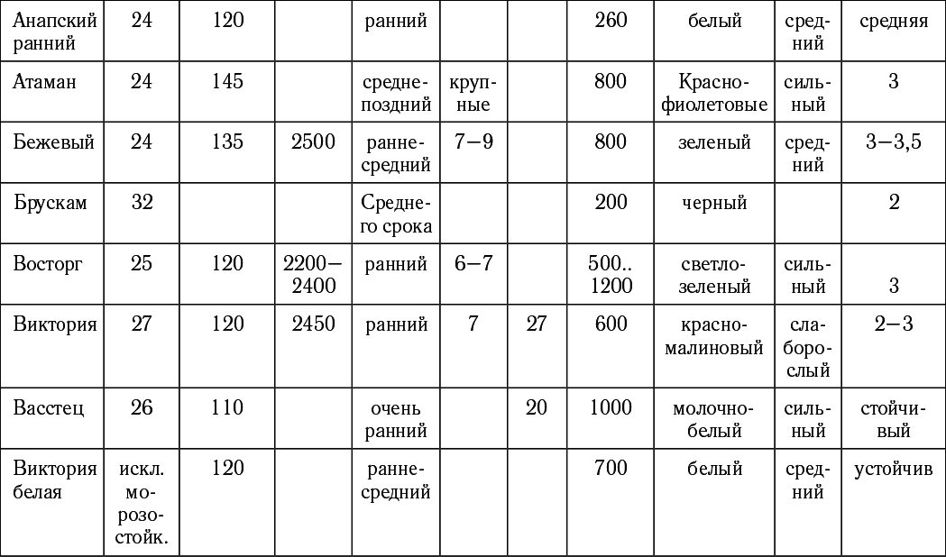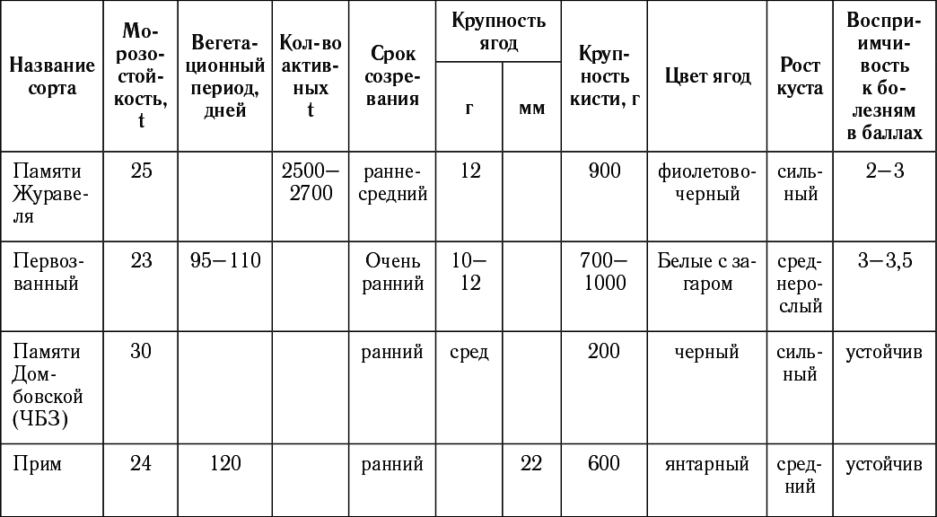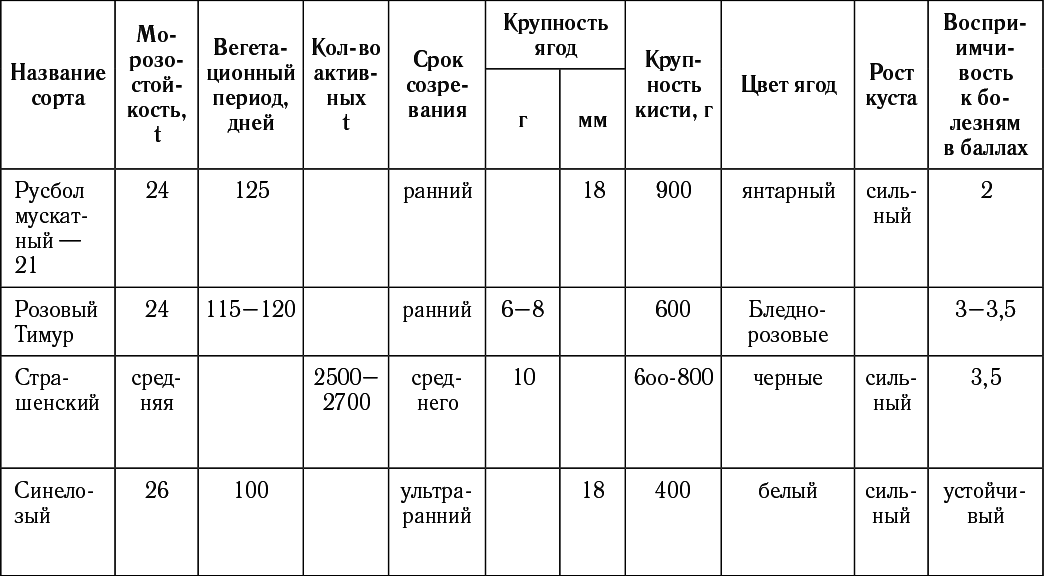 Таблица подбор сортов винограда