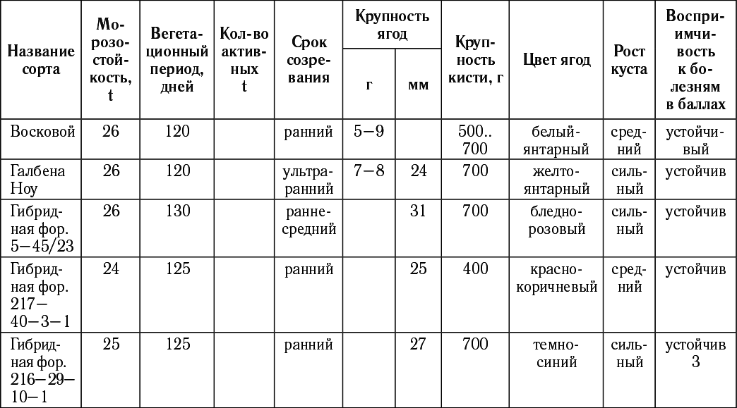 То есть очень важно не брать сорта винограда с активными температурами выше указанных параметров в таблице вашей местности!