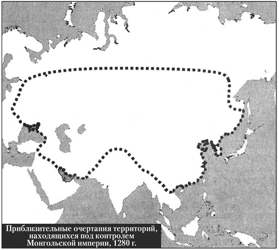 Чингисхан и его преемники, нанеся поражение своим региональным противникам, установили централизованный контроль над территорией, которую современные специалисты в области геополитики определили как «сердце мира», или точку опоры для мирового господства. Их евразийская континентальная империя простиралась от берегов Китайского моря до Анатолии в Малой Азии и до Центральной Европы (см. карту IV). И лишь в период расцвета сталинского китайско-советского блока Монгольской империи на Евразийском континенте нашелся достойный соперник в том, что касалось масштабов централизованного контроля над прилегающими территориями.