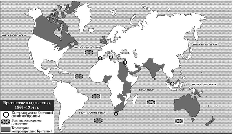 Заокеанская Британская империя была первоначально создана благодаря сложной комбинации из географических открытий, торговли и завоеваний. Однако в значительной мере, подобно своим предшественникам Риму и Китаю или своим французским и испанским соперникам, она черпала стойкость в концепции культурного превосходства. Это превосходство было не только вопросом высокомерия со стороны имперского правящего класса, но и точкой зрения, которую разделяли многие подданные небританского происхождения. Как сказал первый чернокожий президент ЮАР Нельсон Мандела, «я был воспитан в британской школе, а в то время Британия была домом всего лучшего в мире. Я не отвергаю влияния, которое Британия и британская история и культура оказали на нас». Культурное превосходство, которое успешно отстояли и которое легко признали, сыграло свою роль в уменьшении необходимости опоры на крупные воинские формирования для сохранения власти имперского центра. К 1914 г. лишь несколько тысяч британских военнослужащих и гражданских служащих контролировали около 11 млн. квадратных миль и почти 400 млн. небританцев (см. карту VI).
