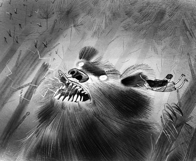 От ужаса я чуть не кувыркнулась вниз. Это какого же он был роста? Я успела подняться на добрых двенадцать метров от земли, а его голова была почти вровень с моей! Я замерла, не смея дохнуть. Медведь был от меня на расстоянии вытянутой когтистой лапы, одного взмаха которой хватило бы, чтоб растерзать меня в клочки. Я слышала его хриплое дыхание, прямо в лицо мне разило из его зловонной пасти. Кое-что, однако, вызывало недоумение: почему он не шевелится? Что за странная неподвижность? Я не понимала, в чем дело. Но тут он приоткрыл веки, и в зарослях шерсти обнаружились глаза – два бельма: мертвые глаза! Зверь был слеп! Я сидела в нескольких сантиметрах от него, а он меня не видел!