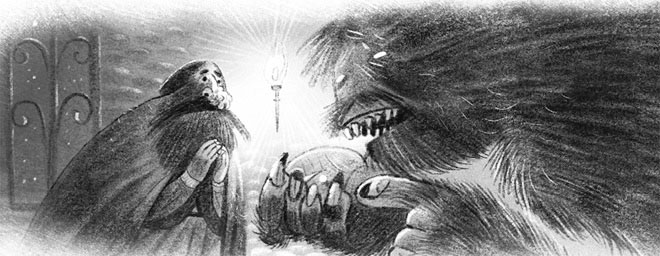 Этот Брамсерф, здоровенный бугай, этакий полузверь, жил в лачуге посреди дремучего леса. Весь в шерсти, как обезьяна (что позволяло ему обходиться без одежды), сильный, как буйвол, он, по слухам, знался с темными силами, но при случае мог оказать услугу, если заплатить, сколько он попросит. И вот король – о безумец! – послал за ним, и на другой день Брамсерф, это страшилище, явился в замок. Король объяснил, чего от него хочет. Брамсерф выслушал все до конца, а потом загробным голосом сказал: