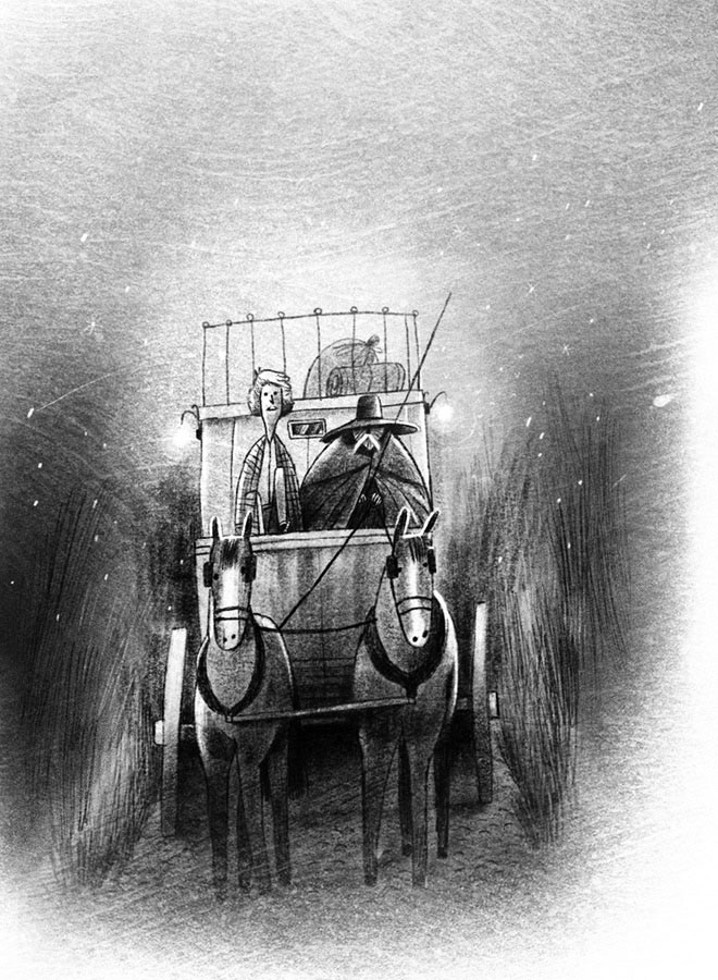 На миг он онемел, потом вскочил на козлы к кучеру, который сидел в ожидании, закутанный в просторный черный плащ. Парень что-то ему сказал, и кучер обернулся и уставился на меня. Он был очень стар. Морщины, глубокие, как овраги, прорезали его лицо. Парень и кучер еще немного поговорили между собой. Я гадала, что бы могло означать это тайное совещание. Что они там обсуждают? И почему старик всматривается в меня с таким любопытством? В конце концов парень соскочил с козел: