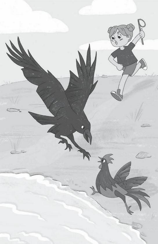 Подъезжая, Рита услышала шум. Яростный клекот, хриплое карканье и глухие удары. Велосипед взлетел на пригорок, и перед изумленной Ритой открылась настоящая битва. Черно-красный клубок подскакивал на месте, иногда распадаясь на два помельче. Рита не сразу узнала в этом клубке петуха Ирода. Рука сама собой сжала палку. Снова петух кого-то обижает! Рита аккуратно положила Стельку на траву и побежала к берегу, на полпути застыв в нерешительности. Вторым драчуном оказался ворон. Большой, черный, с огромным клювом и могучими крыльями. Он расправлял их, затем с силой бил по воздуху, отчего петуха сметало с места, и тот цеплялся когтями за траву, выдирая ее из земли прямо с корнями. Ирод бросался на ворона с какой-то отчаянной решимостью, а противник не собирался уступать и все теснил и теснил петуха к зарослям осоки.