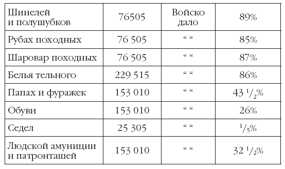 Артиллерийским, инженерным и интендантским довольствием Донское войско снабжалось сначала исключительно ввозом из Украины, но постепенно все снабжение ставилось самостоятельно. Достаточно сказать, что потребность Войска выражалась в следующих цифрах: