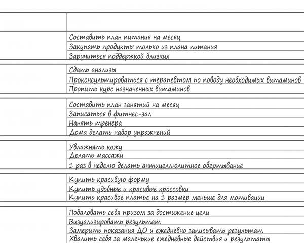 Итак, в нашем списке теперь есть целых два десятка сверхцелей. Если периодически поглядывать в них, мозг будет фокусироваться на них и искать варианты их достижения.