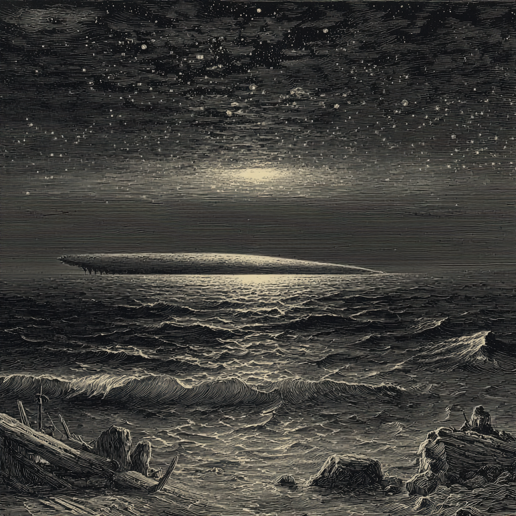 Дело в том, что с некоторого времени многим кораблям случалось встречать в море «что-то громадное», какой-то длинный веретенообразный предмет, который порой светился в темноте и далеко превосходил кита по размерам и быстроте движений.