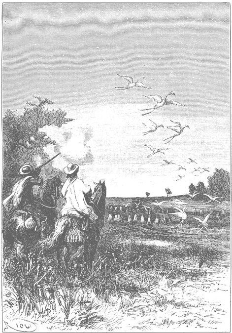 Приближение всадников не очень встревожило фламинго, и это не понравилось ученому Паганелю.