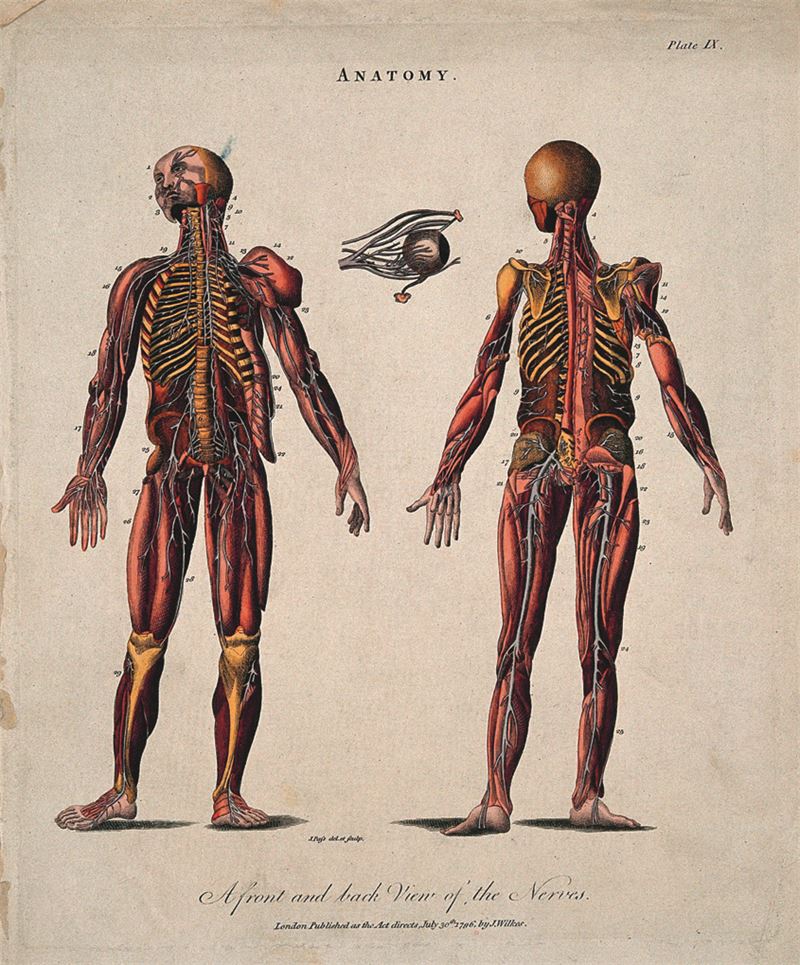 5. Экорше с изображением лицевых и спинных нервов, а также строением глаза. Джон Уилкс, 1796 г.