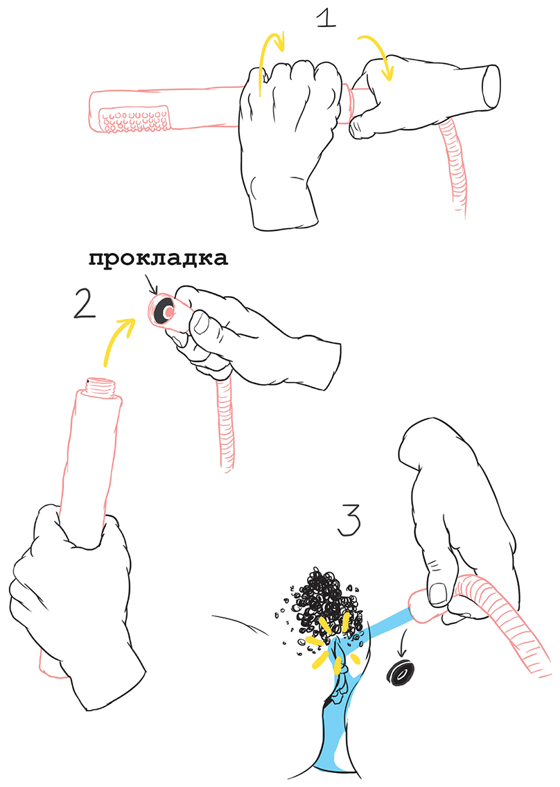 P.S. 1: внимание, специальная душевая прокладка может выскочить под давлением воды, не забудь вставить ее назад перед завинчиванием насадки!