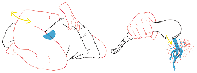 2 – Непрямой контакт: потрогай себя через трусики, потри себя подушкой или используй душ, установленный на режим «массаж» или со свинченным распылителем (но это довольно мощное воздействие).