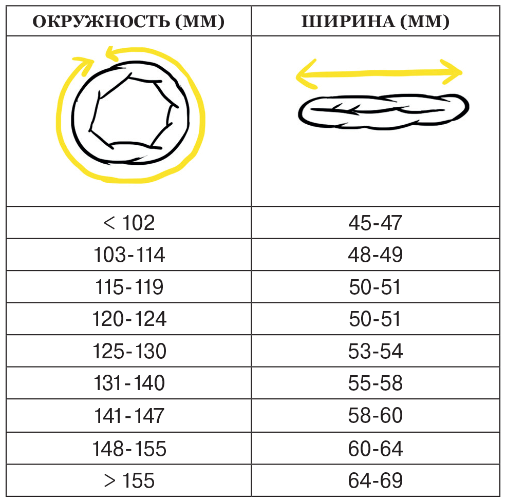 Сняв мерку, по таблице на следующей странице можно узнать примерную среднюю ширину презерватива, чтобы сделать правильный выбор в магазине.