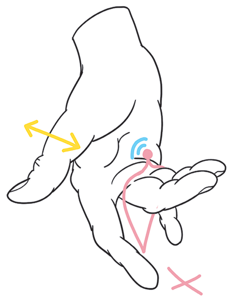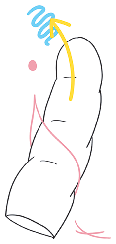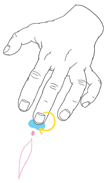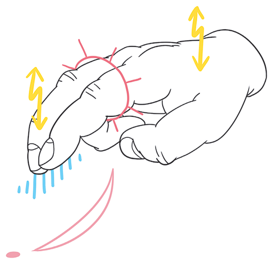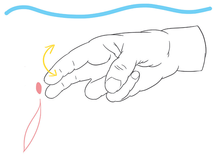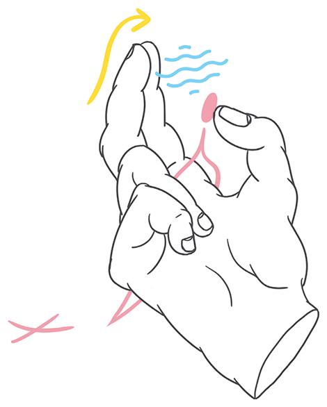 Вы сидите в ванне, твоя рука шастает там и сям, но вода тебя раздражает, потому что постоянно смывает смазку и она больше не скользит. Это очень обидно – не заняться приятными вещами в таком месте, поэтому сложи пальцы, как изображено на рисунке, и подвигай средним и указательным, лаская клитор. Это движение увлечет за собой воду и обеспечит завихрение, которое продолжит массировать клитор вслед за твоими ласками. Гениально!