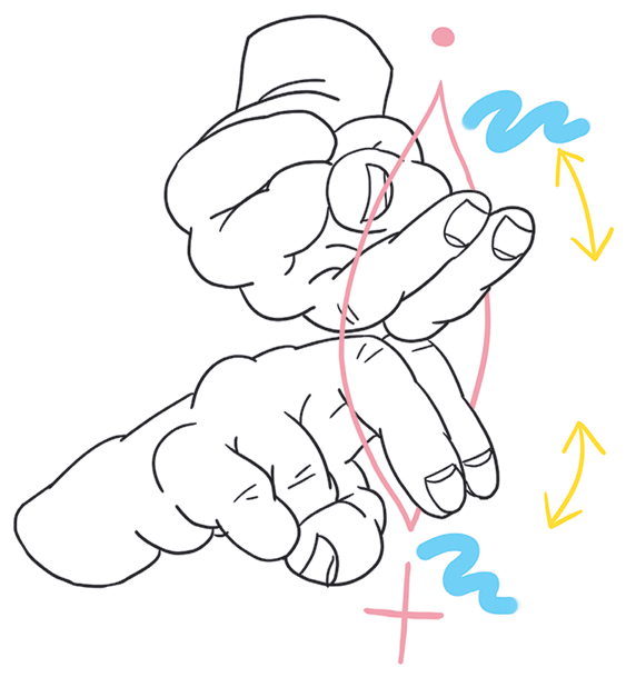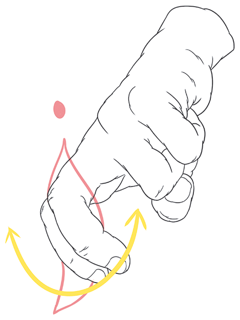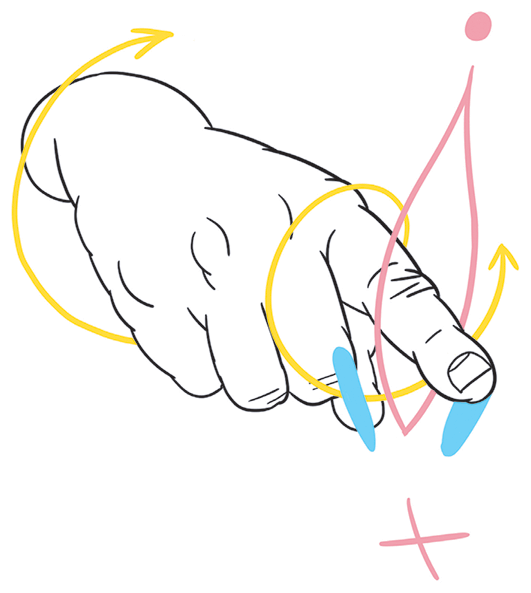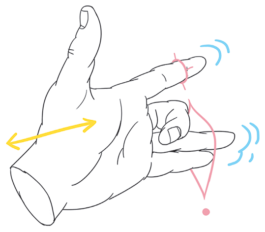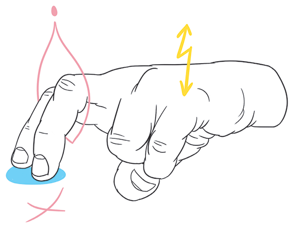 Вращай рукой, одновременно двигая пальцами туда-сюда… Коснись вверху, коснись внизу. Одного пальца вполне достаточно, если хочешь знать мое мнение.