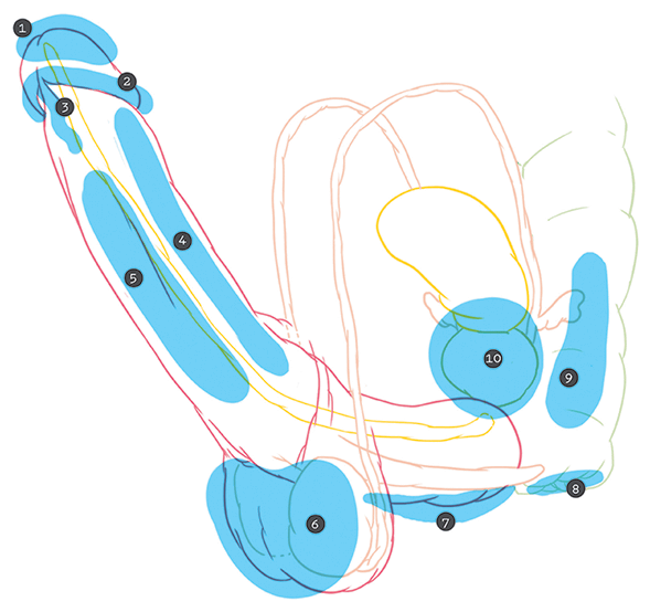 Все 10 зон удовольствия на пенисе и на соседних участках тела