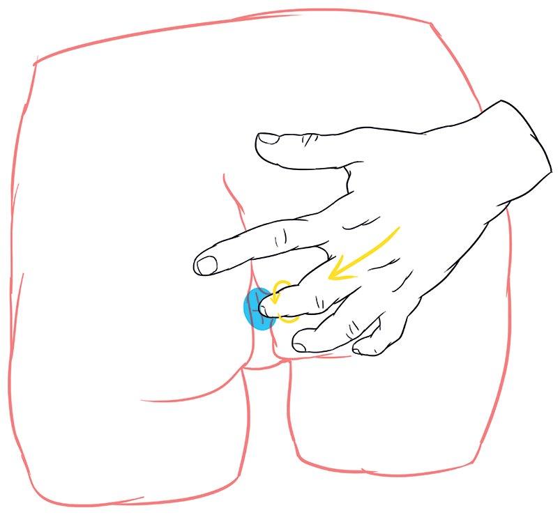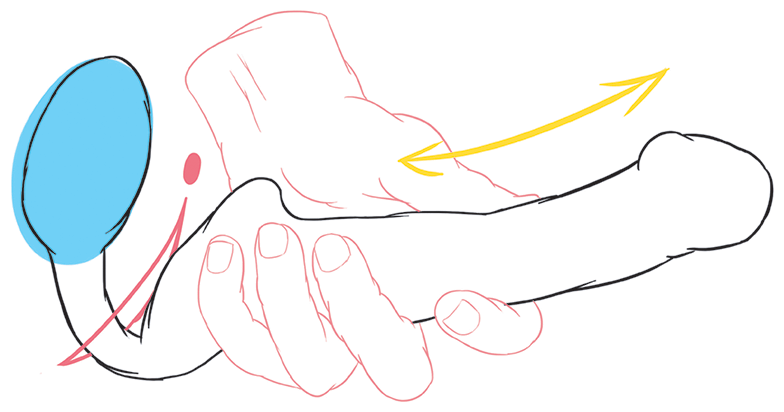 Попроси партнера не дергаться и держать пенис или вибратор так, как нарисовано на картинке. Важно, чтобы он или она поняли, что не надо сразу доставать до печени, не дожидаясь твоего сигнала. Тебе следует контролировать ситуацию и ни в коем случае не идти на поводу у бездумных действий, которые могут закончиться травмой. Снимай трусы, но помни, кто главный. Не спеши, успокойся, следи за ощущениями. Можно даже помогать себе, придерживая пенис или вибратор своей рукой.