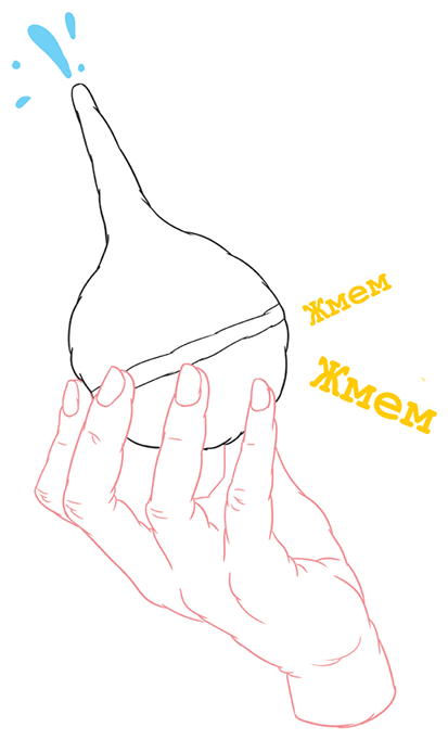 Вытащи ее и легонько сожми, чтобы в ней не осталось лишнего воздуха. Еще раз погрузи спринцовку в воду, чтобы она наполнилась и в ней не осталось воздуха. Это не обязательно, но избавит тебя от неловких ситуаций с громким пуканьем в хорошей компании.