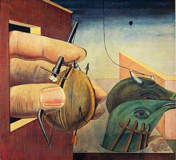 Эта картина стала иллюстрацией к «Эдипову комплексу», важнейшему понятию психоанализа Фрейда. Метафора сексуальных отношений, включающих в себя любовь, ненависть и смерть, показана через расколотый орех (женское начало: щель – вульва), штырь и стрелу – символы боли, искривленную лестницу – символ борьбы полов. Лай, отец Эдипа, и Иокаста, его мать, представлены как птицы, спрятанные в деревянный ящик и лишенные возможности двигаться. От их действий ничего не изменится: всё предрешено – судьбы не изменить.