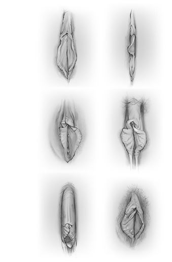 Поскольку вульвы скрыты, если только женщина не раздвигает ноги, почти невозможно получить точную систему отсчета для ошеломляющего разнообразия форм и размеров половых губ. Порнография – одна из немногих возможностей, где мы можем видеть открытые вульвы. Правда, эта индустрия в основном демонстрирует нам вульвы с маленькими половыми губами. Результатом является очень распространенное заблуждение, что длинные, большие половые губы – это ненормально. Правда в том, что каждая вульва – уникальна и достойна благоговейного отношения и наслаждения. И размер тут не имеет никакого значения.